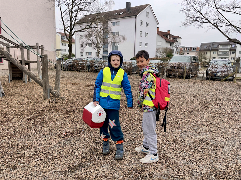 Nach erfolgreichem Abschluss der Juniorhelferausbildung erhalten die Juniorhelfer eine Urkunde. Ab diesem Zeitpunkt wenden die GrundschülerInnen ihr Wissen als „Schulsanis“ direkt im Schulleben an. Während der Pausen sind sie in Zweierteams mit gelben Westen, einer Notfalltasche, Kühlakkus und dem Tröstebär auf dem Pausenhof unterwegs. Auf diese Weise engagieren sich die Kinder und übernehmen Verantwortung für sich und andere.