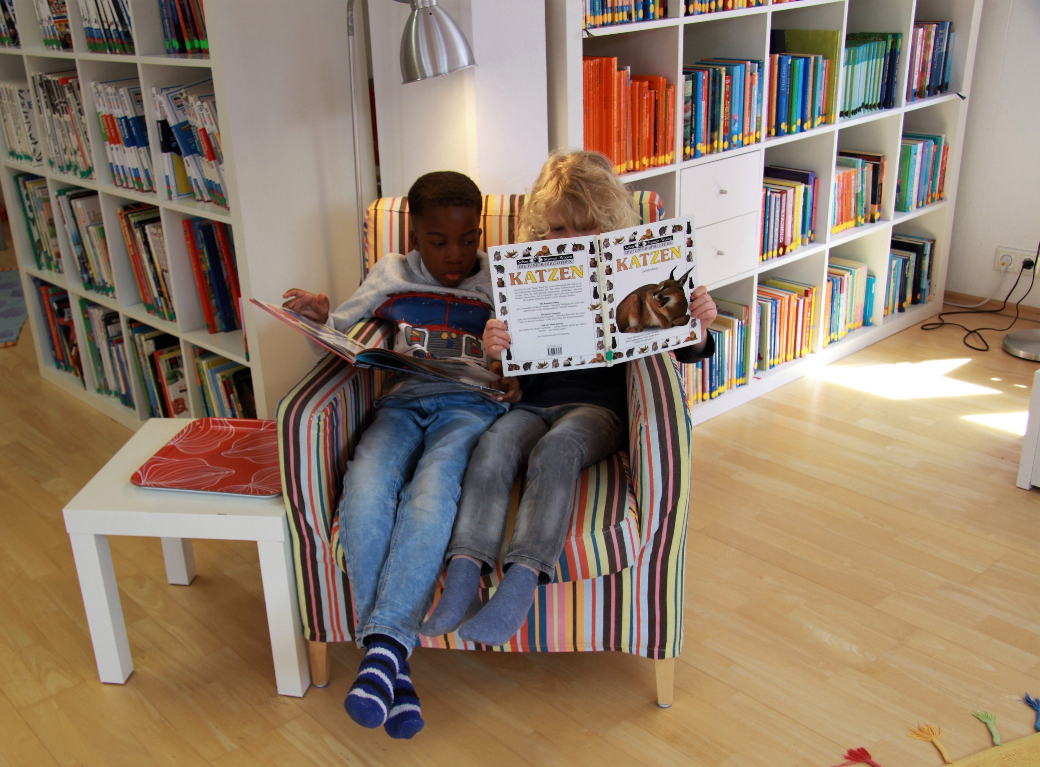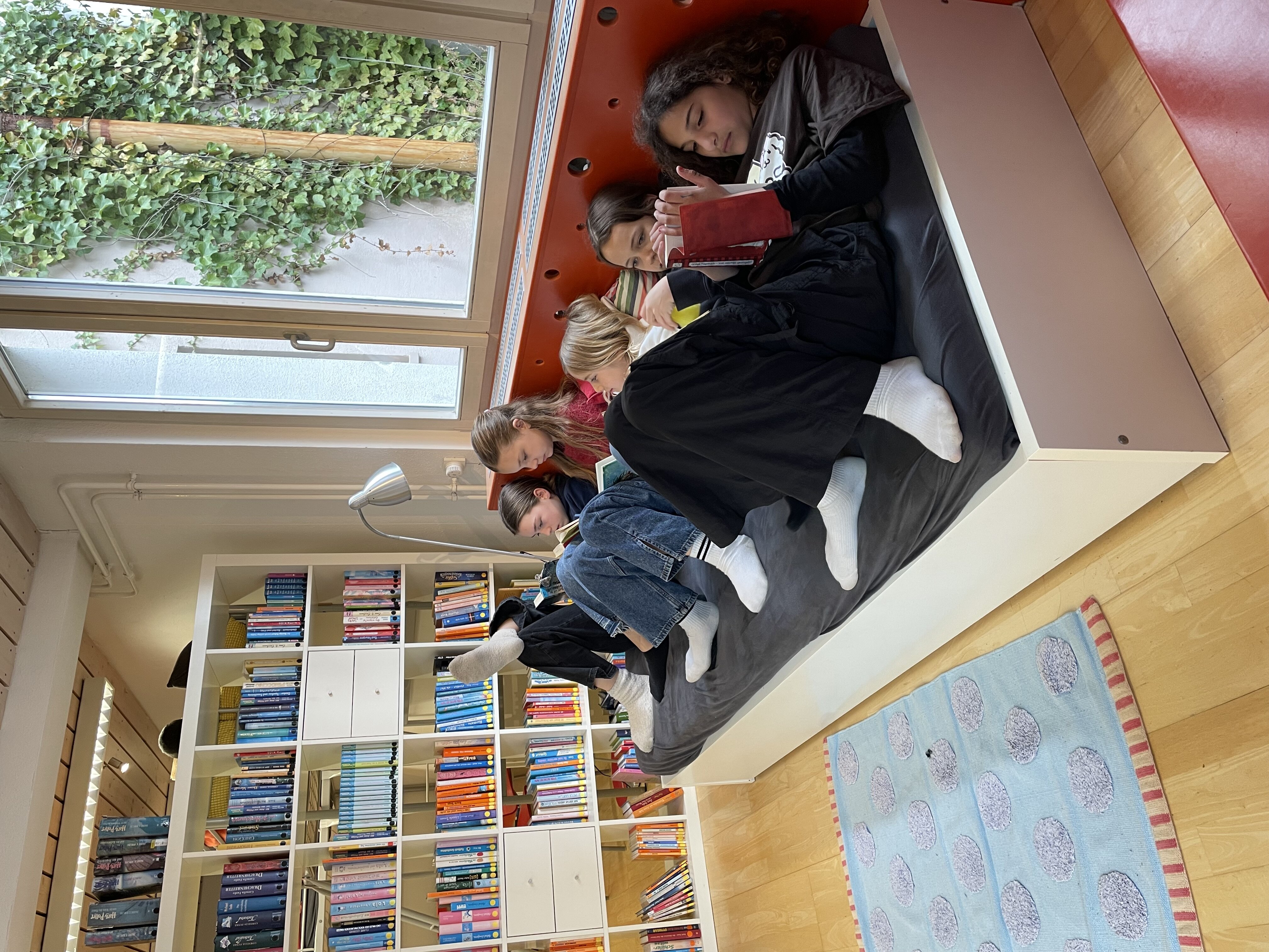 An der Ratoldusschule gibt es eine ritualisierte Lesezeit, denn eine Stunde pro Woche verbringt jede Klasse im Lesezimmer. Es wird aber nicht nur zum eigenen Lesevergnügen genutzt, sondern selbstverständlich auch zu „Vor-Lesungen“ – sei es durch Lehrkräfte, Eltern, Lesepat*innen oder durch Autor*innen. Und immer wieder ist das Lesezimmer natürlich auch Teil von sogenannten „Lesenächten“.
